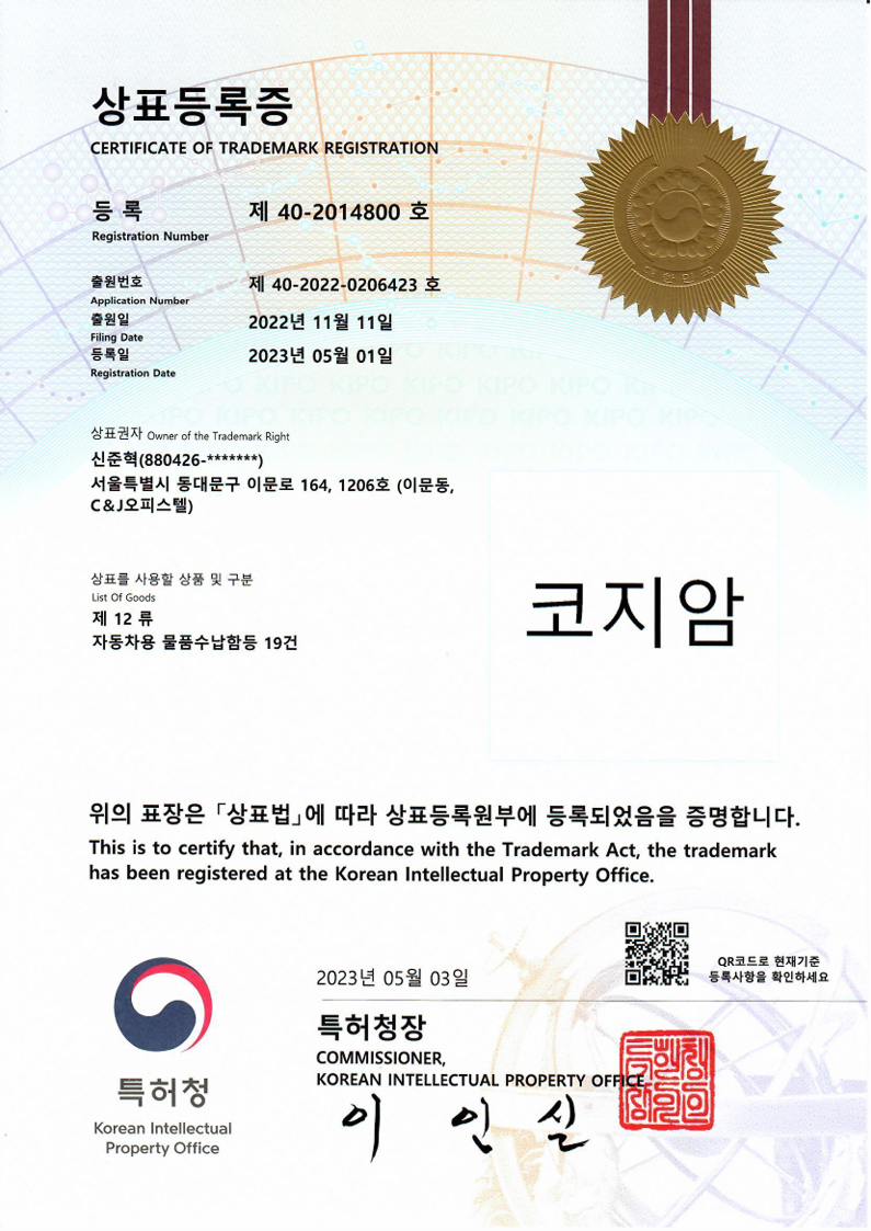 Product Registration Certificate - CozyArm