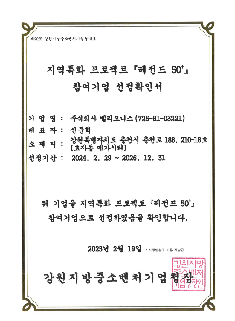 Legend 50+ Selected Company Certificate